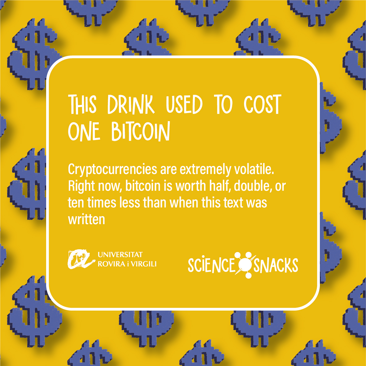 Cryptocurrency volatility is extreme and, right now, a bitcoin is likely to be worth half as much, twice as much, or ten times less than it was on the day we prepared this coaster and the text you are reading.