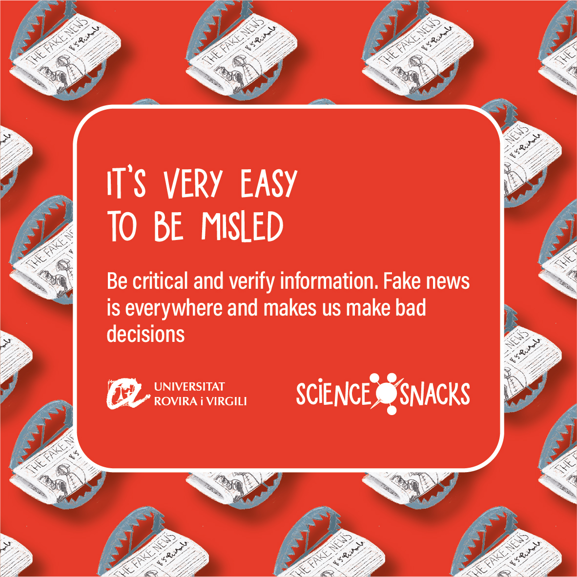 disinformation or fake news is deliberately false information that is distributed through the media and social media. Behind any false information there is always an actor (economic, political or social) who wants to profit from the falsehood, for example, to win an election, to make money, to gain influence and power, etc. Often, disinformation doesn't just aim to deceive us, but also makes us doubt reliable sources, leading us to a point where we no longer believe anything or anyone.
